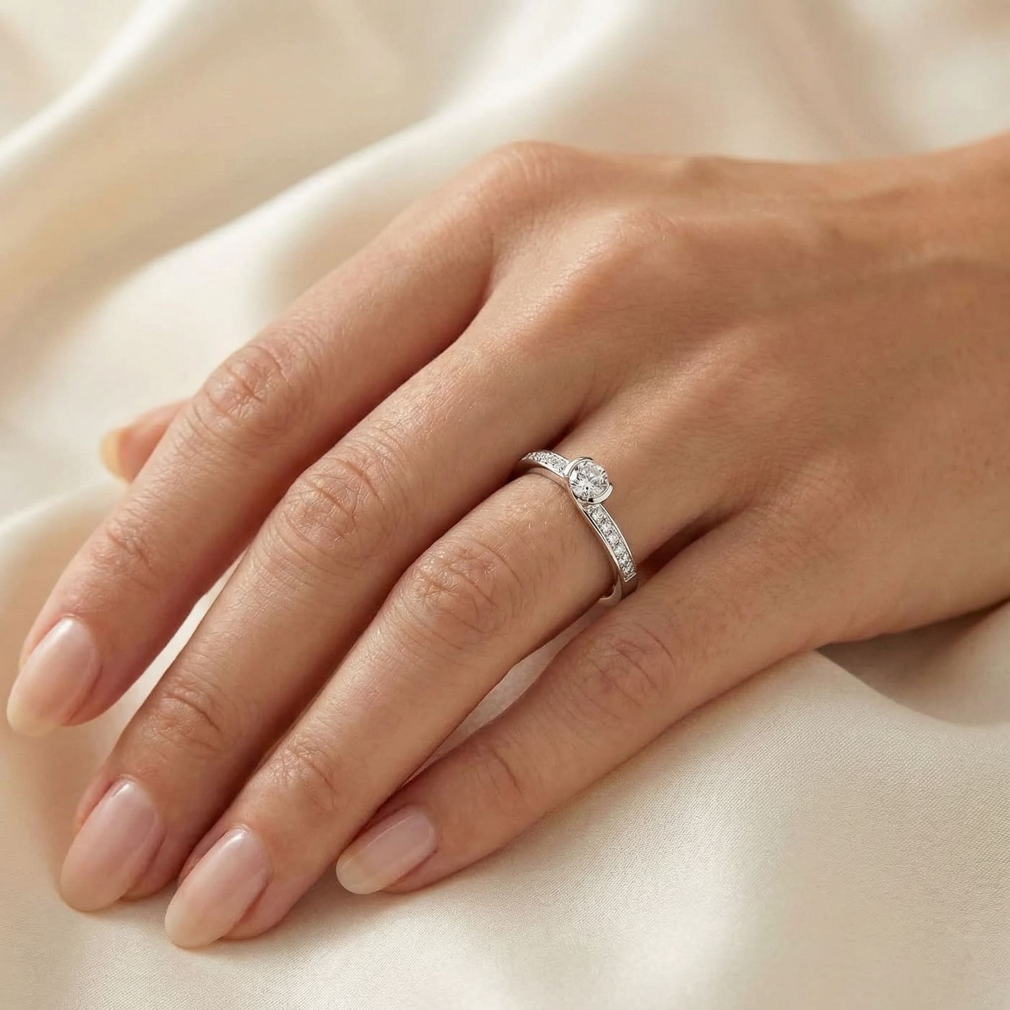 White gold, timeless color and perfectly matched to the diamond of your jewel Diamond White Gold Engagement ring NEW LOVE EMBRACINGS pavé