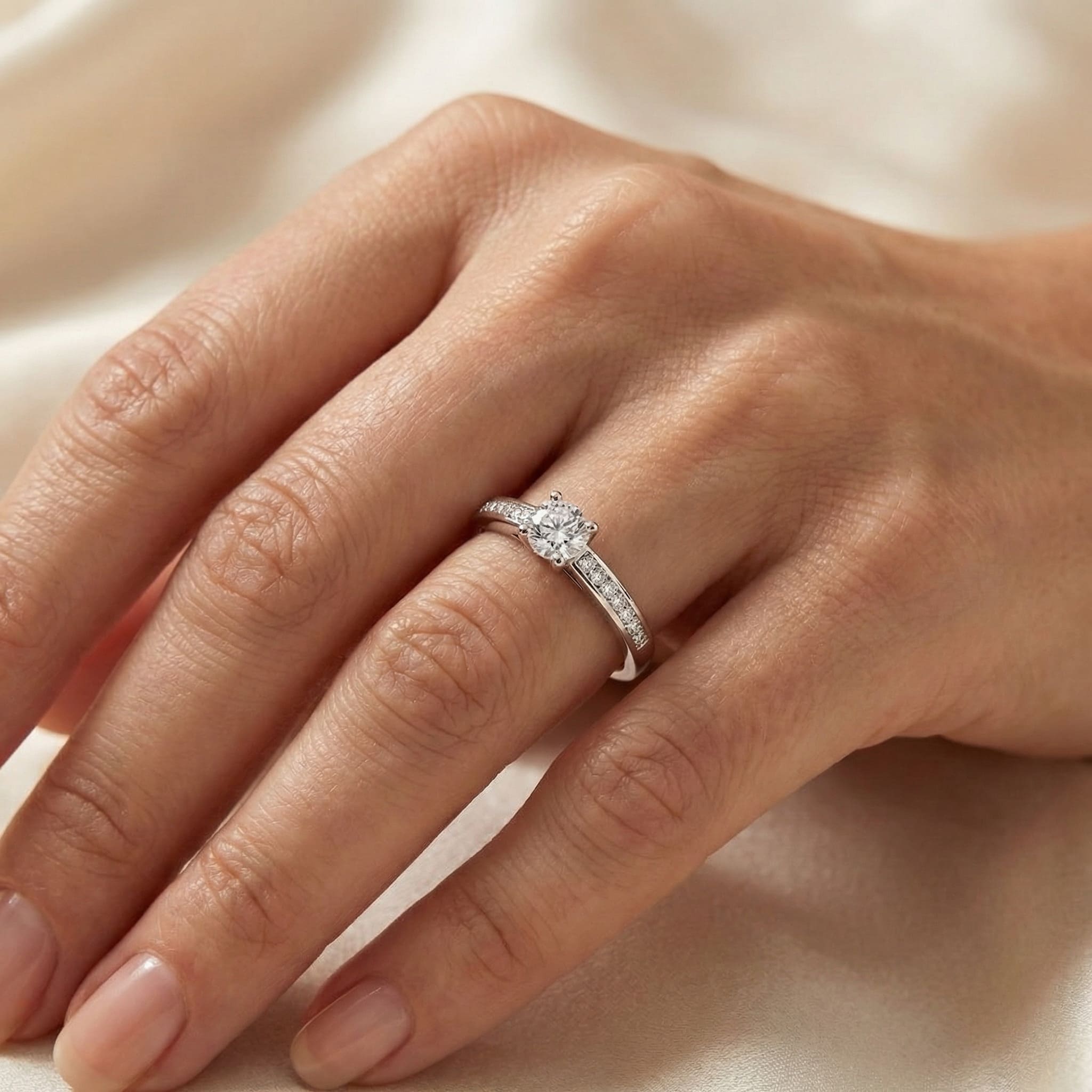 We recommend diamonds with a white hue between D (exceptional white+) and H (white) because the whiteness of the diamond increases its brilliance. From color grade I and J (slightly tinted) onwards, diamonds are slightly yellow-tinted: avoid on white gold and acceptable on yellow gold.