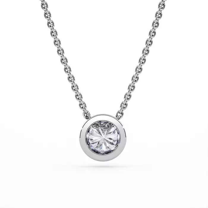 A diamond pendant in a bezel setting is always the right choice if you are looking to give a volume effect to the stone. A well-cut diamond shines just as well in a prong setting as in a bezel setting. Crimping and French manufacture. A jewel designed to be stable and not turn. Classic cable chain. Lobster clasp. Weight and quality of the diamond according to your choice. Exclusively natural diamonds whose quality is certified by GIA, HRD or IGI.