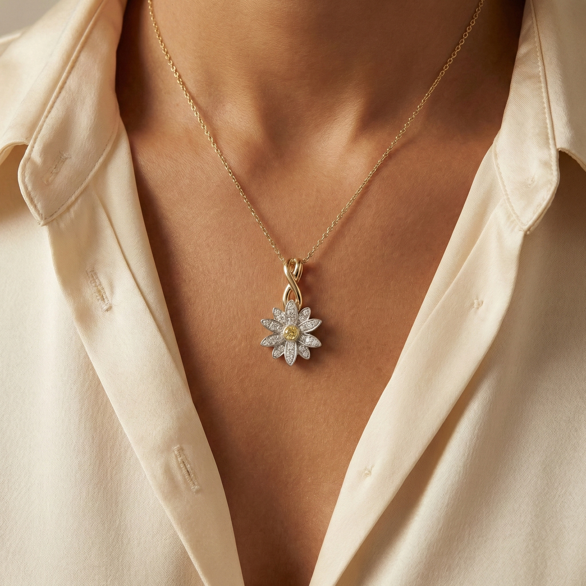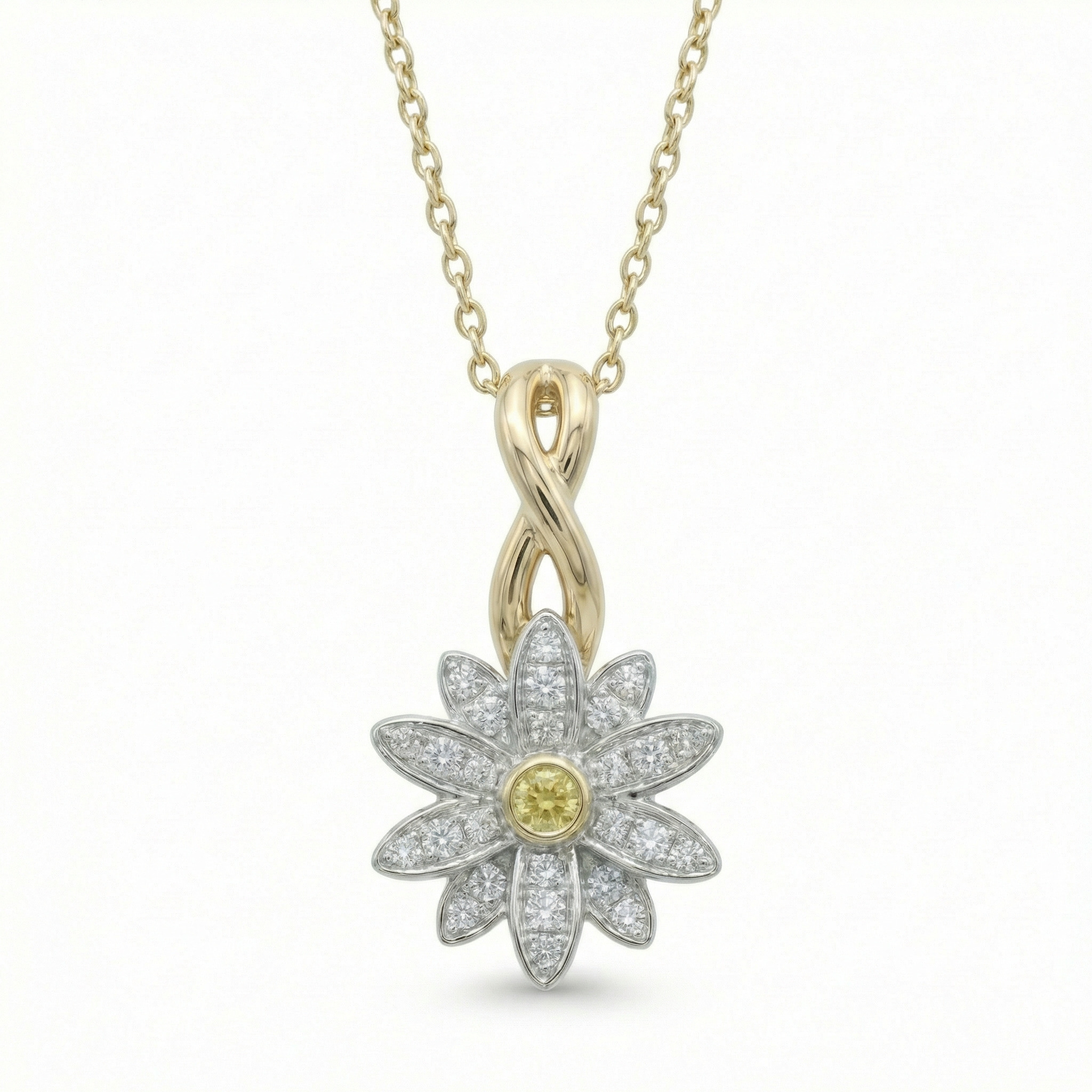 Diamond Yellow Gold Pendant & Necklace Sea Lily