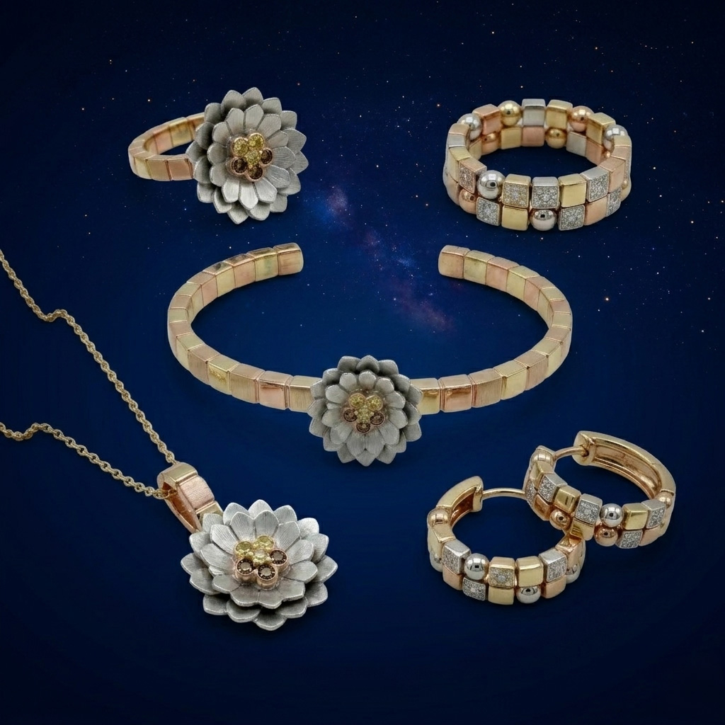 Aujourd’hui, Sami De Hantsetters prolonge cet héritage en réunissant savoir-faire artisanal et technologies contemporaines. Inspirées par la nature et les grands espaces, ses créations traduisent une vision personnelle de la joaillerie : des bijoux conçus comme de véritables œuvres, où l’or et les diamants capturent l’émotion de l’instant et invitent à l’émerveillement.