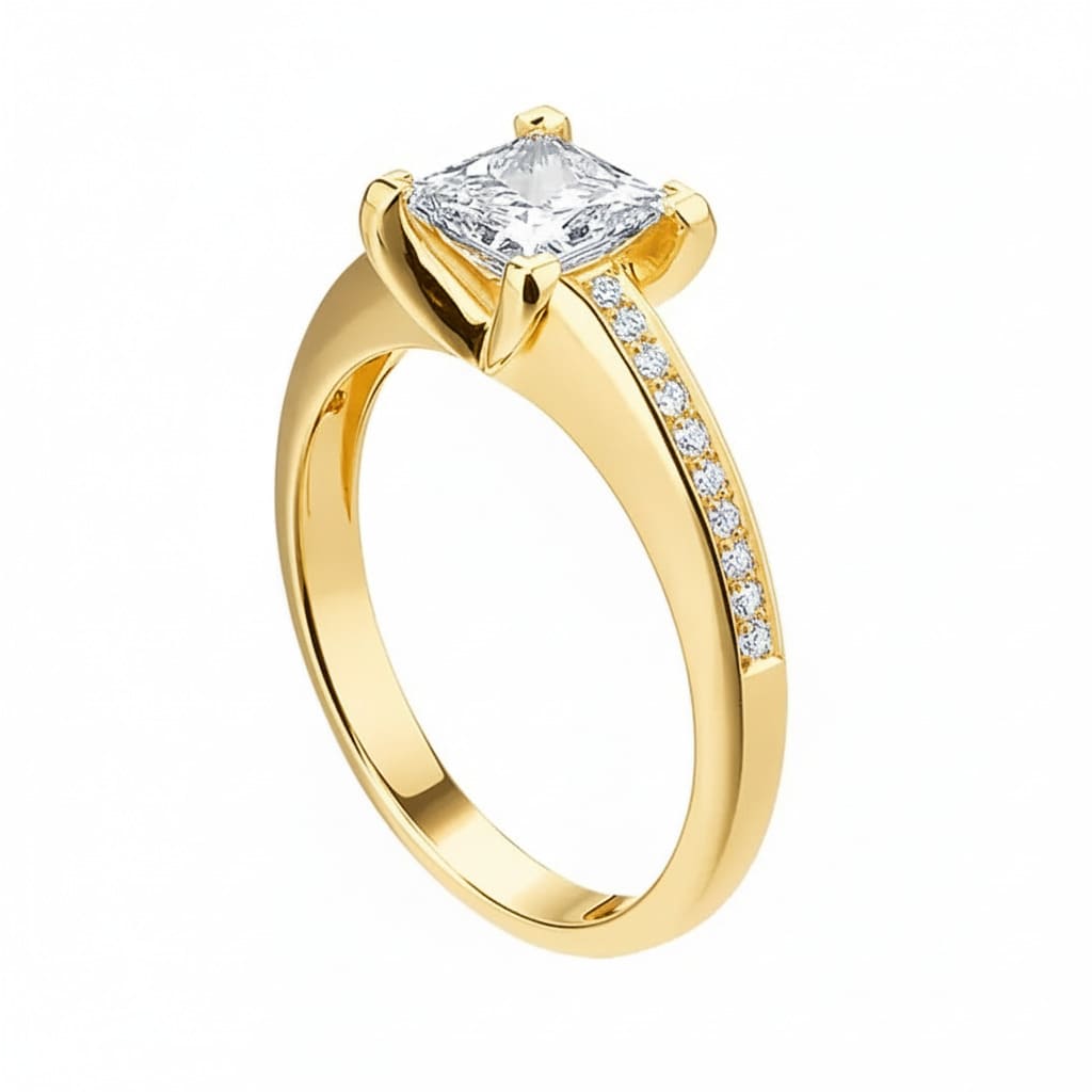 Bague Or Jaune Diamant PRINCESSE ROYALE avec pavage, prix de vente selon carat et qualité du diamant