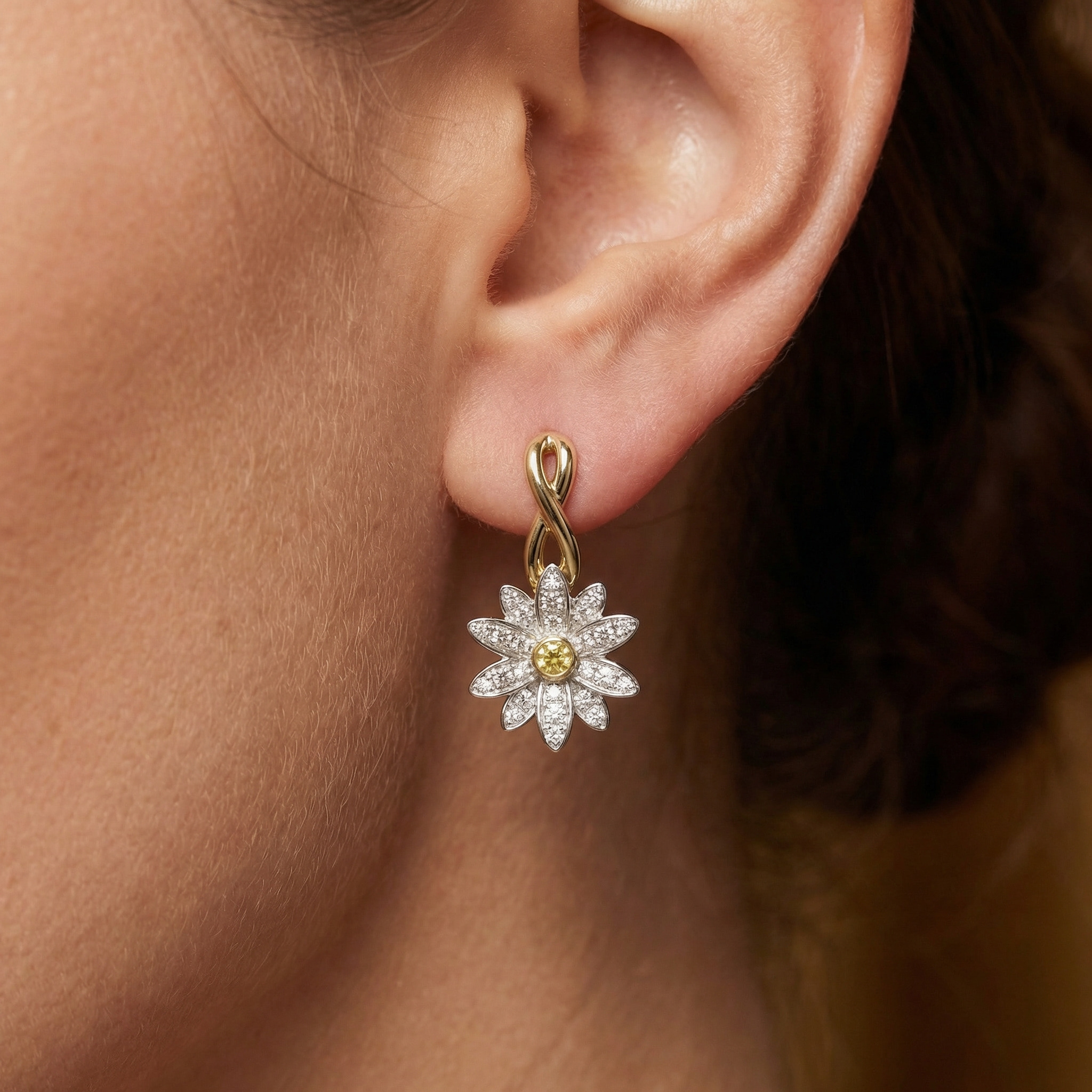 Boucles d'Oreilles Or Jaune Diamant Lys de Mer