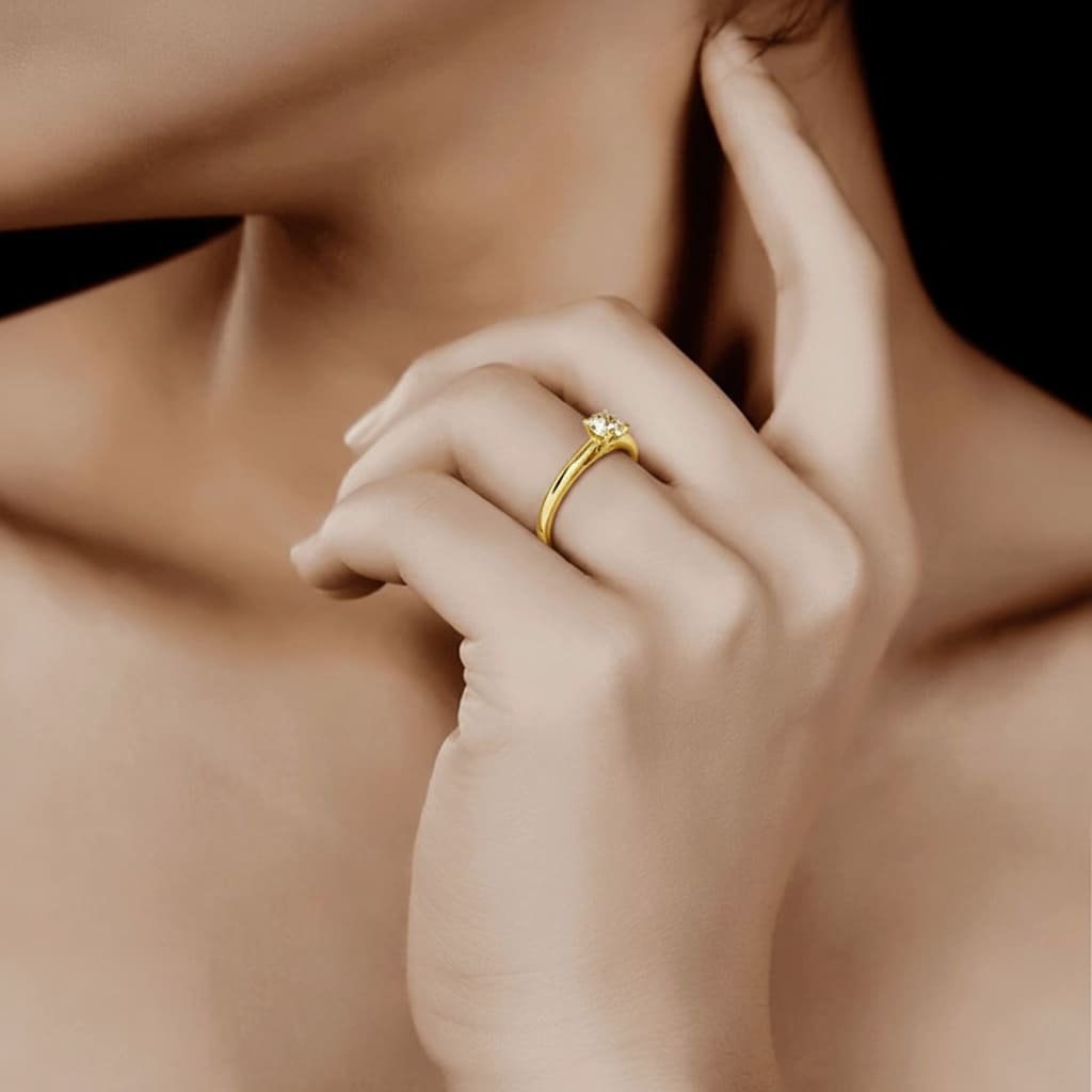 L’or jaune, couleur naturelle et solaire pour ce bijou Solitaire Or Jaune Diamant 4 Griffes Classic