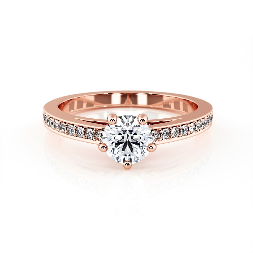 Solitaire Or Rose Diamant 5 Griffes pavé