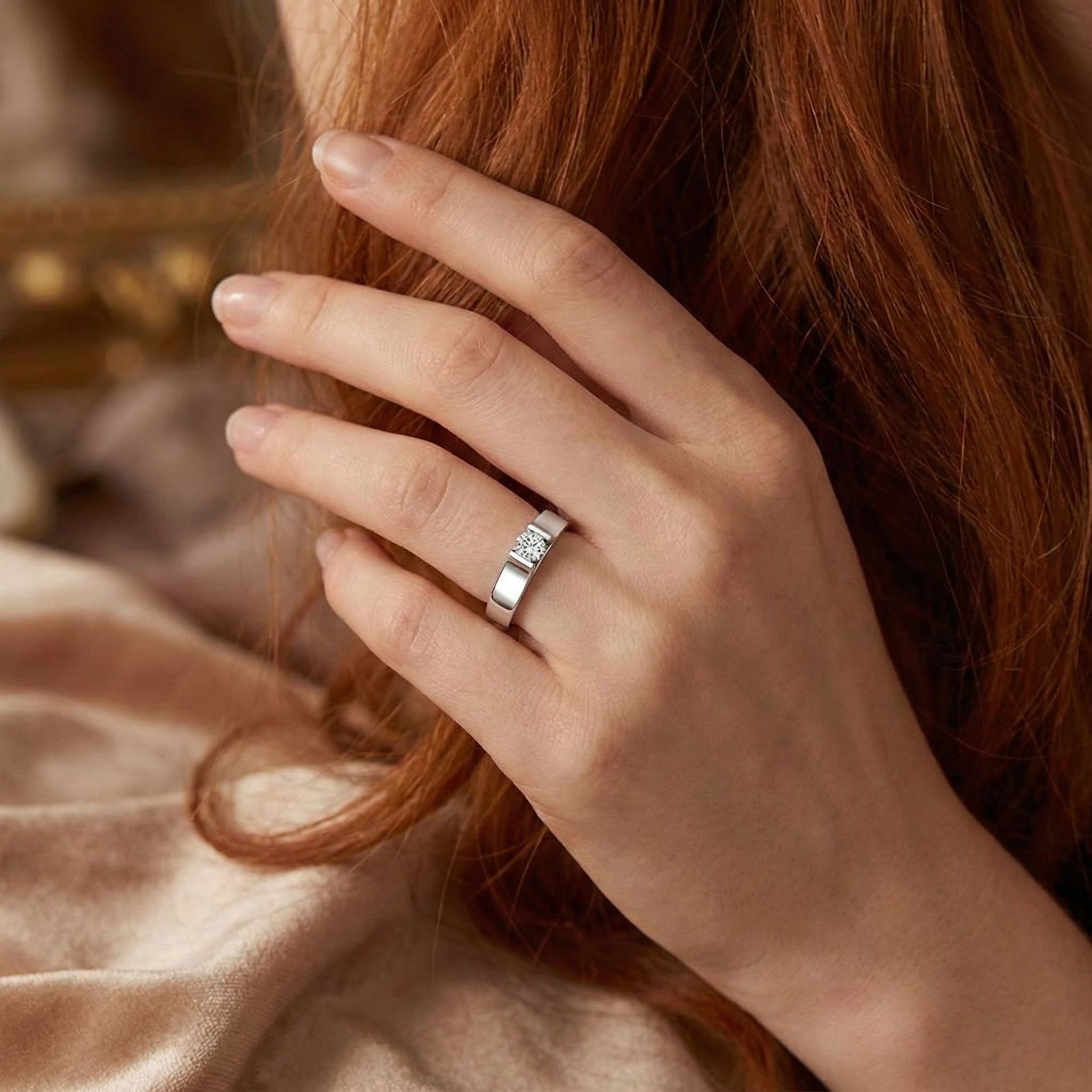 Le solitaire ENTRE TOI ET MOI. Or blanc, jaune ou rose 18k (750/000). Poids d'or 8 grs. Fait main sur mesure, fabrication française. Livrée avec écrin luxe en bois verni.