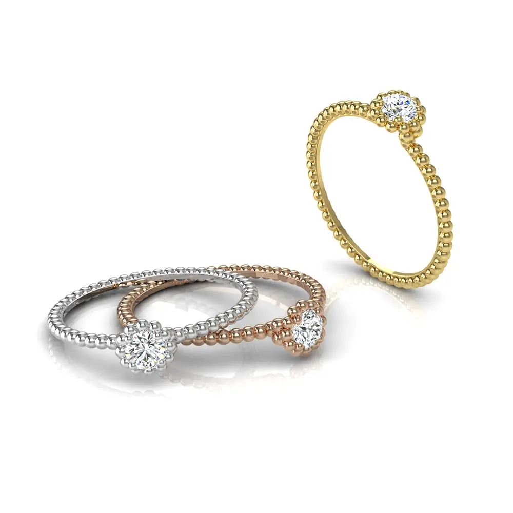 L'or rose, couleur cuivrée et glamour pour ce bijou Solitaire Or Rose Diamant Perlé d'or