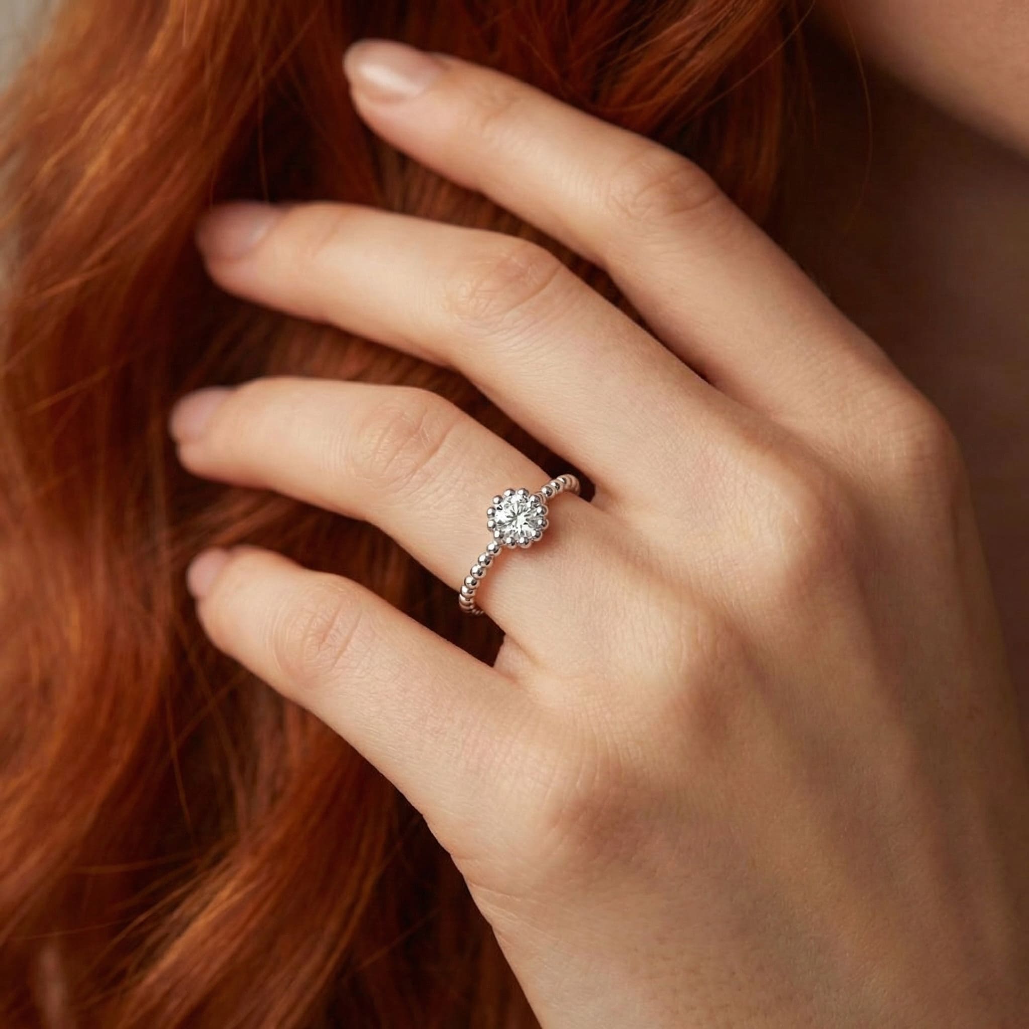 L'or blanc, couleur intemporelle et parfaitement assortie au diamant de votre bijou Solitaire Or Blanc Diamant Perlé d'or